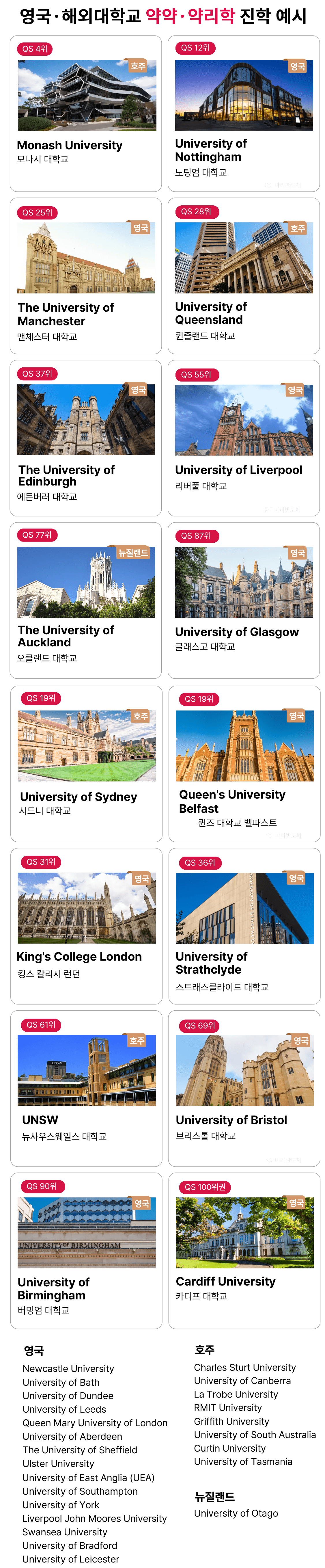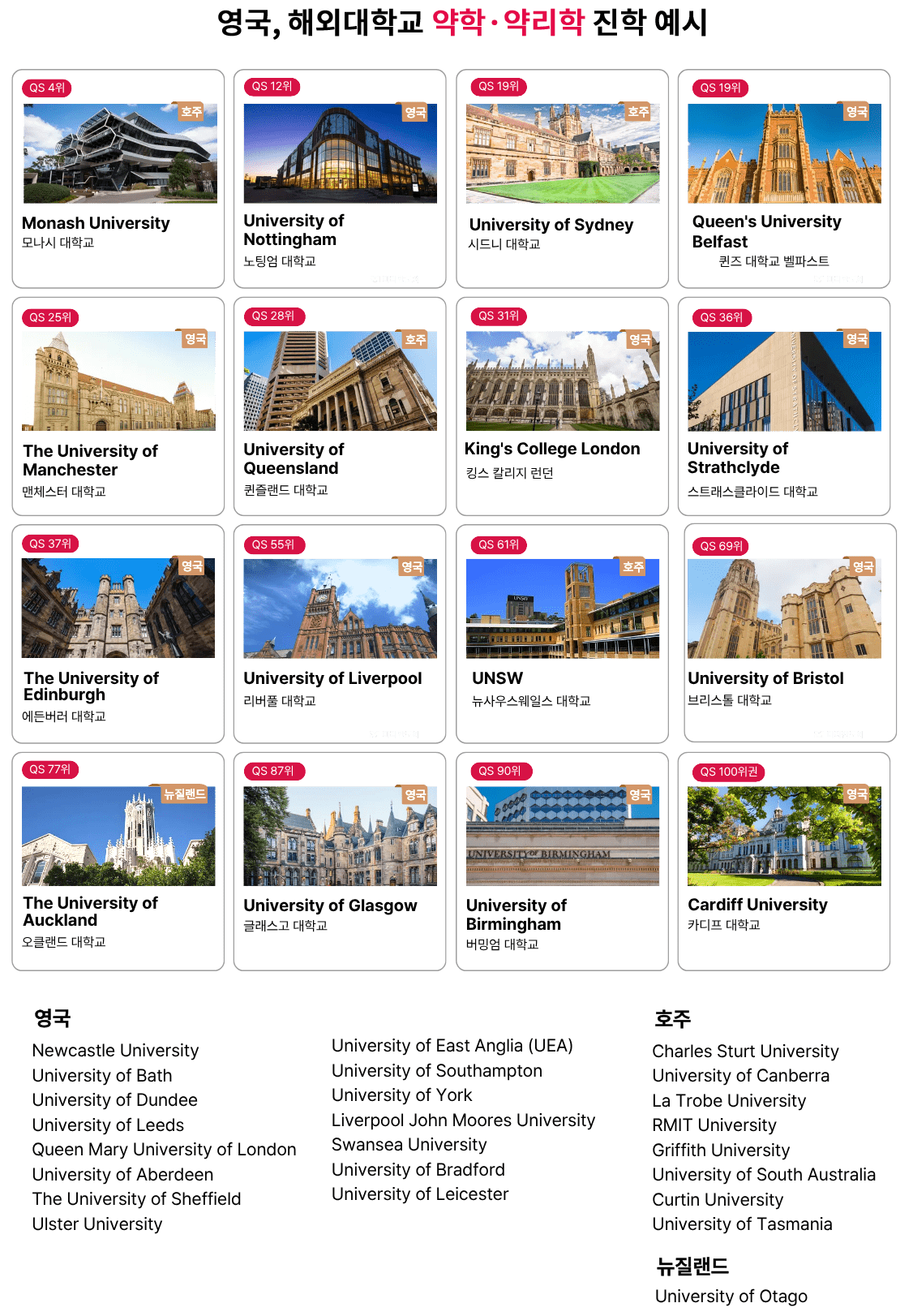 영국, 호주, 뉴질랜드 등 해외 약햑·약리학 진학