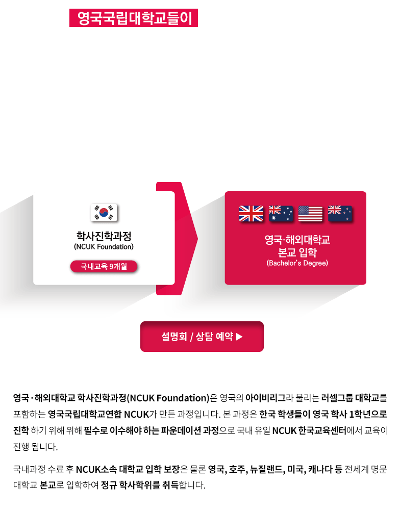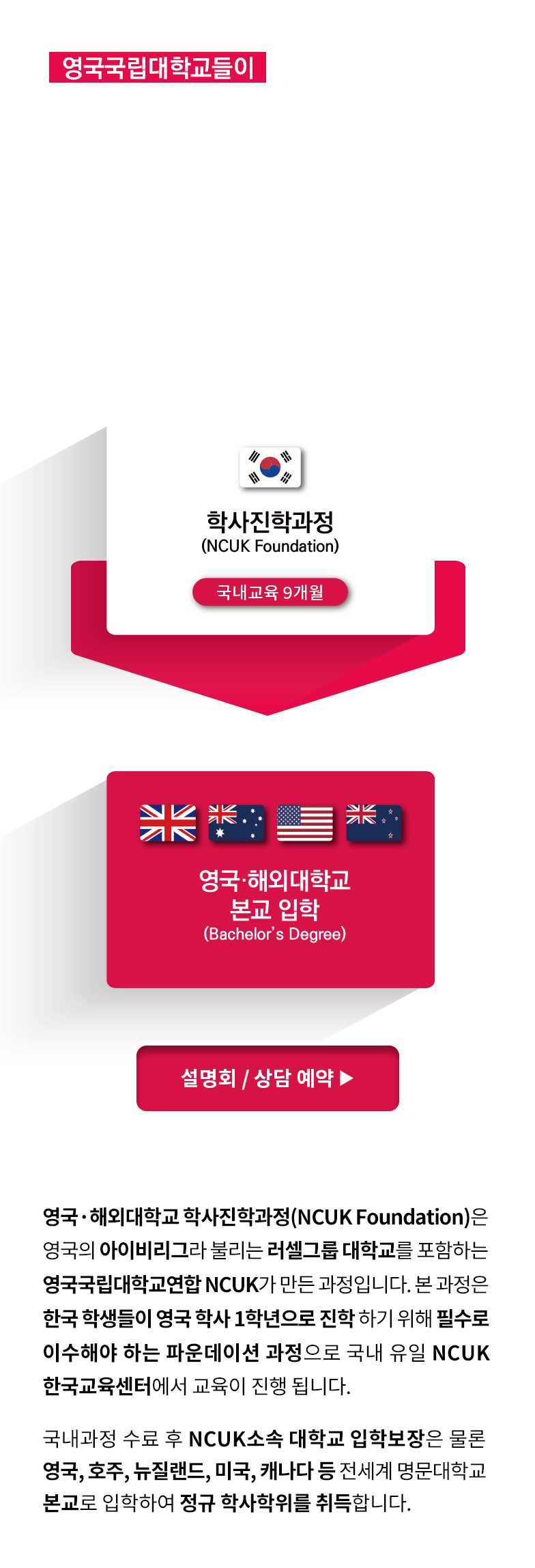 국내과정 수료 후 NCUK 소속 대학교 입학 보장