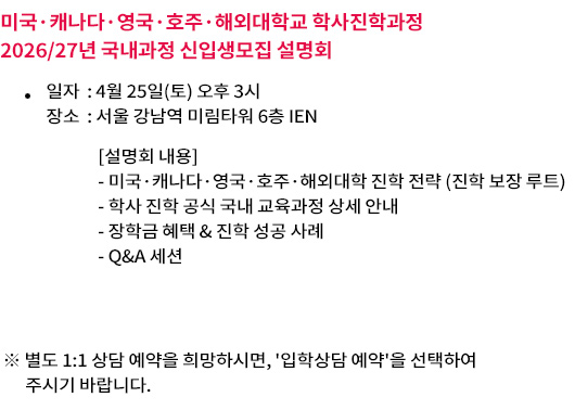 신입생은 온라인 지원서 제출, 영어 레벨 테스트 및 서류심사 등 전형절차를 거쳐 입학합니다.